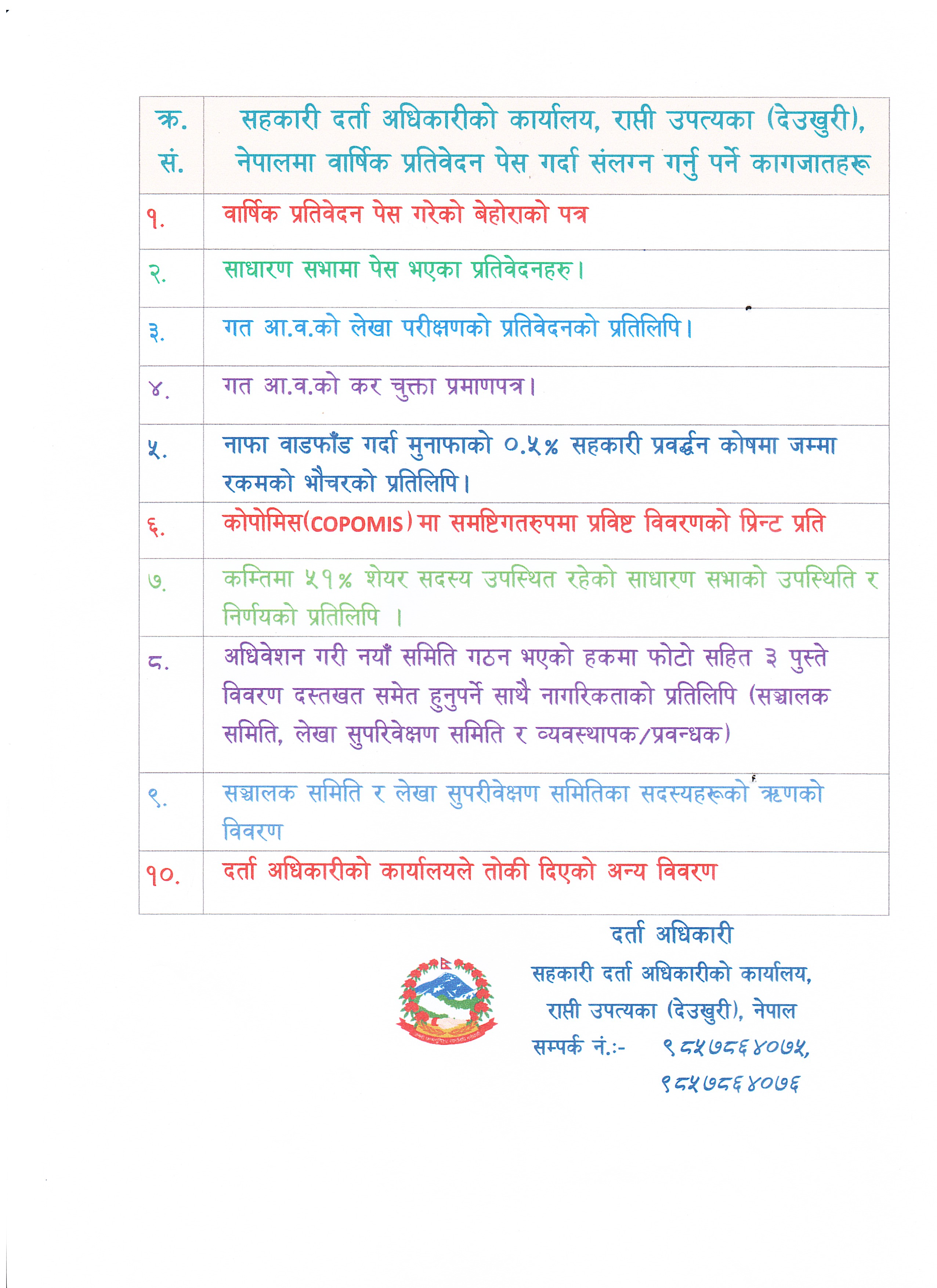 सहकारी संघ/ संस्थाहरुले बार्षिक प्रतिेवेदन पेस गर्दा संलग्न गर्नु पर्ने कागजातहरु